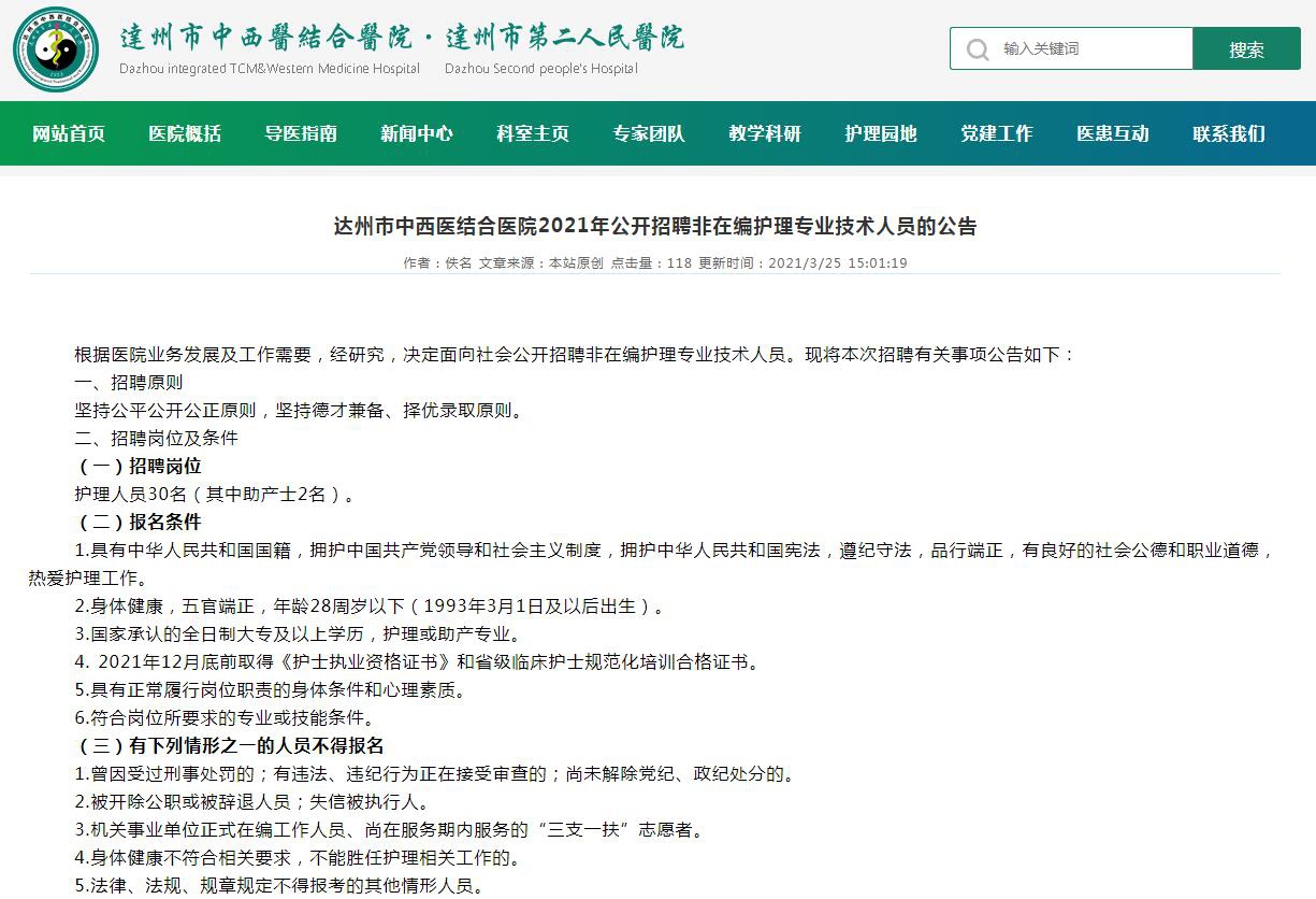 熱忱歡迎各路英才踴躍報名,達州市中西醫(yī)結(jié)合醫(yī)院期待與您攜手共進。